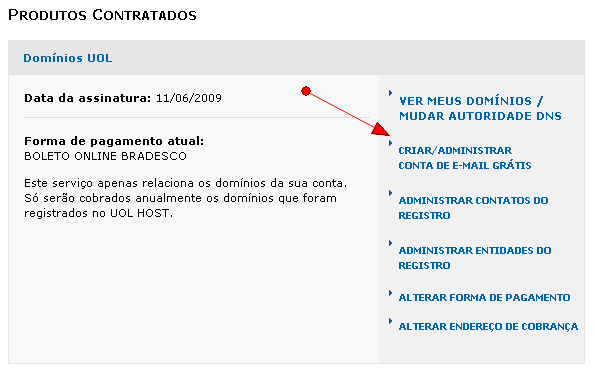 Em seu painel do UOL HOST, clique para ir ao painel de administração de emails.