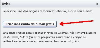 Na janela pop-up, escolha "Criar uma conta de email grátis"