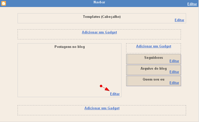 Nesse caso usaremos CSS para retirar a imagem de todos os widgets de determinada coluna. Se você quer retirar a edição rápida da sidebar, por exemplo, acesse a aba Layout ==> Editar HTML e não marque a caixinha "Expandir Modelos de Widgets".