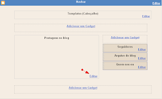 Acesse a aba Layout ==> Editar HTML. Salve uma cópia de seu template (SEMPRE!!!). Marque a caixinha "Expandir Modelos de Widgets" e procure o trecho no código HTML: